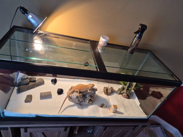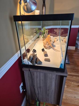 75 Gallon Aquarium and stand Rehoming 1 year and a half old bearded dragon. Moved have no room. Can't deliver Cash only