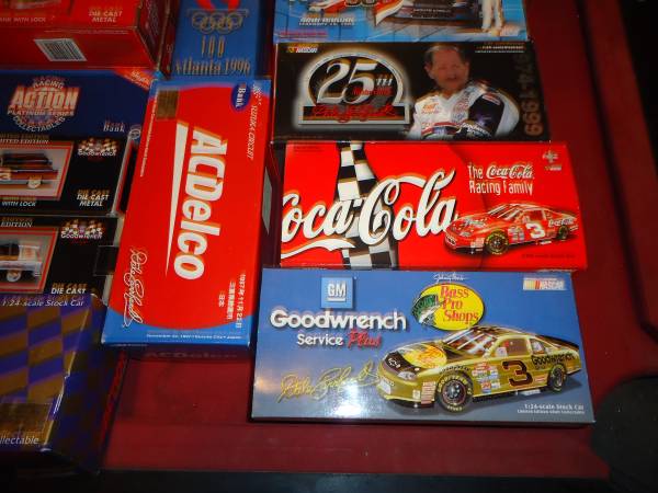 Selling 20 of the larger 1/24th scale Action and other brands of Dale Sr diecast cars and Pitwagons all in excellent condition and also in original boxes... All of the cars are new in package and have never been displayed... There are various brands including Action, Racing Champions, and Revell brands... There is 20 cars/pitwagons total and single purchase prices are listed as follows: