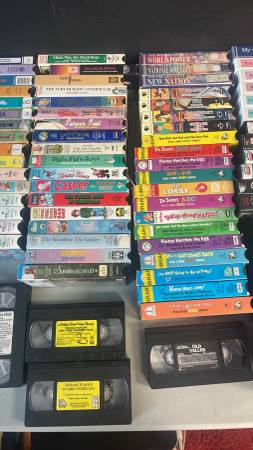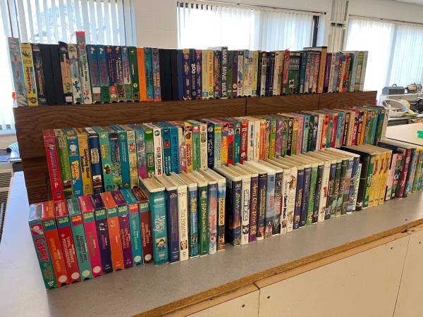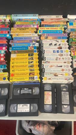 Children's entertainment and educational VHS tapes from a former elementary school. Update: Pictures 2-7 show remaining available tapes as of August 2025 $1 per VHS tape