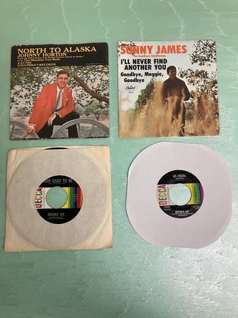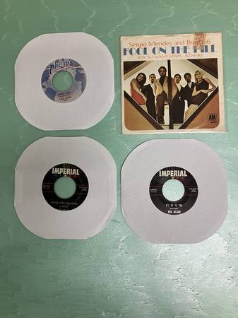 8 each 45 rpm records from the 1960s for sale at $25 total. Price reflects 50% price guide value. These are duplicates from my collection. Artists included:
