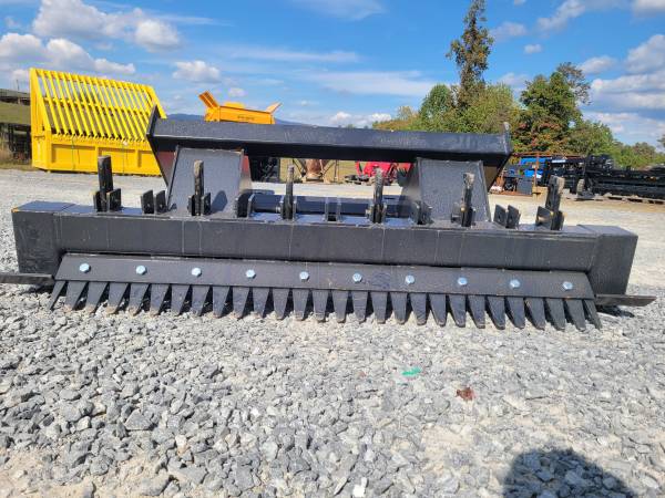 ONLY $1,000 OUT THE DOOR for this NEW 72" Ripper with optional comb or finishing rake. Ripper is great for ground penetration, driveway grading, as well as used as an arena drag. It is made to easily prep a garden or rip hard packed or frozen ground. The tines are adjustable for more or less ground penetration. Ripper is equipped with universal skid steer mounting plate and adjustable depth ripper teeth. Skid Steer Land Ripper w/Rake Comb, Scarifier, Dethatcher, Forward & Reverse, Depth Adjustable Ripping Teeth Other names for the Ripper are Tiller and Field Cultivator.