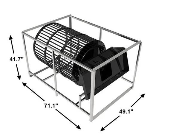 OUT THE DOOR FOR ONLY $1,500 CASH for this NEW Skid Steer Rotating Rock Screener for sale. Brand new and still in the shipping crate! Runs on standard flow hydraulics (8-23 GPM) Industry Standard Quick Attach. Will work on skid steers, wheel loader, tractor front end loader, anything with the industry standard quick attach and hydraulics to run the motor.