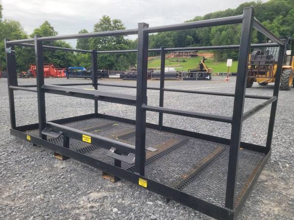 I have a BRAND NEW NEVER USED 4'x8' telehandler AND skid steer work platform man basket in for sale OUT THE DOOR ONLY $2,000 CASH ONLY. I do not accept checks of any kind. Whether you are a construction worker, telehandler operator, skid steer operator, painter, or lumberjack, you will find this 4 FT x 8 FT safety cage incredibly useful! When you need to complete aerial tasks, you will need a sturdy safety cage to finish the job. It can help you, and your personnel perform a myriad of aerial assignments, including changing out lights, painting buildings, repairing roofs, and cutting down trees. This platform is designed with your protection in mind. It has mesh safety screen flooring, internal handrails, and inward-facing doors that keep you and your workers securely inside. Additionally, the doors close with safety latches and pins for reinforced security. These essential safety features help ensure fewer injuries, slips, and falls. This basket is compatible with most standard forklifts and telehandler machines. To attach the cage to your machine, slide the forks through the sleeves.