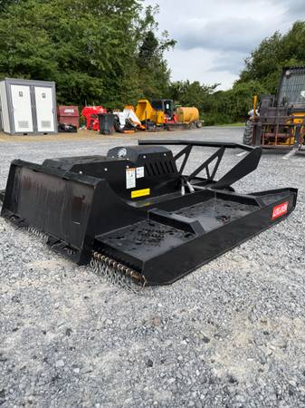 OUT THE DOOR ONLY $4,500 CASH (Add 4% if paying with card) for this BRAND NEW NEVER USED heavy duty skid steer brush cutter. Rated to do up to 3.5" diameter material, this bush hog has a 72" cutting width utilizing 4 double edge hardened blades on a 4/5" thick blade carrier, operated by a 60HP gearbox. Requires 18-35 GPM to operate and weighs roughly 1,100 pounds.