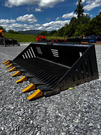 OUT THE DOOR ONLY $1,500 CASH ONLY (add 4% if paying with card)for this BRAND NEW NEVER USED heavy duty 78 inch rock bucket. This Professional Series rock bucket is made with the universal quick-tach mounting plate. 3/8" tines spaced 2" apart will help you sift thru dirt to pull out the smallest of rocks, without clogging. Complete with skid steer universal attachment plate.