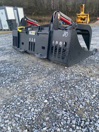 OUT THE DOOR ONLY $3,500 CASH (Add 4% if paying with card) for this BRAND NEW NEVER USED 80" severe duty rock grapple. This Severe Duty Skid Steer Rock Grapple Attachment is ideal for cleaning up rocks, logs/brush, and other general debris from properties or job sites. This is a durable heavy duty attachment, but light enough that it won't unbalance your machine when picking up heavy objects. Designed specifically to handle picking up irregular shapes without losing grip. Along with heavy duty construction, this grapple has grease points on all pivot points and bushings and cylinder covers to protect the cylinders from debris. Comes complete with flat faced couplers.