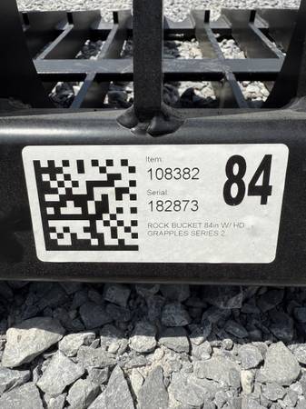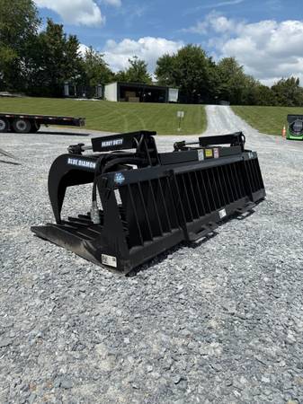 OUT THE DOOR ONLY $3,500 CASH (Add 4% if paying with card) for this BRAND NEW NEVER USED 84" Blue Diamond heavy duty rock grapple. The Heavy Duty Rock Bucket Grapple by Blue Diamond has heavy duty grapple clamps constructed from 1/2" steel. The rock bucket is heavily reinforced has is constructed using 3/8" steel. The tines are spaced at 3" apart allows for sifting out debris such as dirt from the load. The laser cut cutting edge gusset tips at the end of the tines work great for breaking up soil or using as a land plane. The inside of the bucket has a drop down "valley" that keeps the rocks from sliding out.