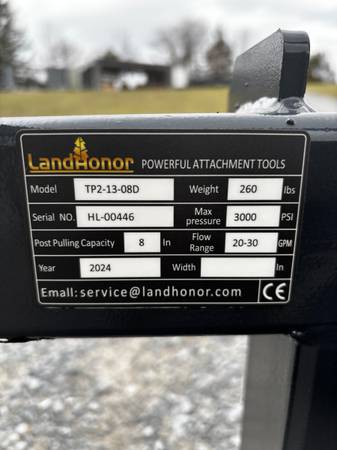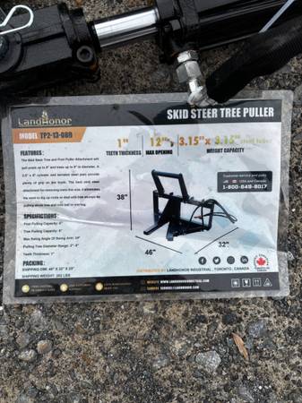 I have a BRAND NEW NEVER USED HEAVY DUTY Skid steer tree puller / post puller for sale OUT THE DOOR ONLY $1,000 CASH ONLY. I do not accept checks of any kind. Grease fittings at the pivot points. Complete with hoses and flat faced couplings. Industry standard quick attach. This Skid steer post puller or tree puller is ready to go to work. Universal skid steer quick attach.