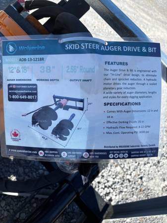 OUT THE DOOR ONLY $1,800 CASH (Add 4% if paying with card) for this BRAND NEW NEVER USED 2" Hex Drive Skid Steer post hole digger with 2 bits . Hex Drive bit sizes are 12" and 18" . These are brand new and still in the crate. Features standard flow, High torque motor. Universal skid steer attachment.