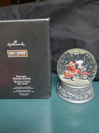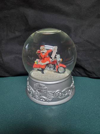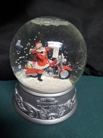 The globe sits on a heavy silver base with the Bar and Shield Logo on one side and Harley Davidson Signature on the other side.