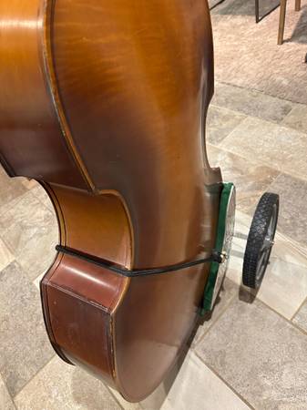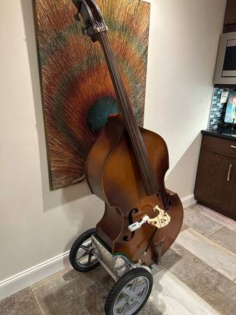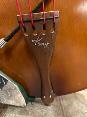 Incredible Kay 1953 Model C upright bass. These old Kays are loved for their fat, thumpy pizzicato tone, ideal for Rock, Country, Blues, Folk and Jazz styles. This one has the usual minor chips and dings, but is in solid condition and setup to play. Electronic tuner and custom wheel cart included.