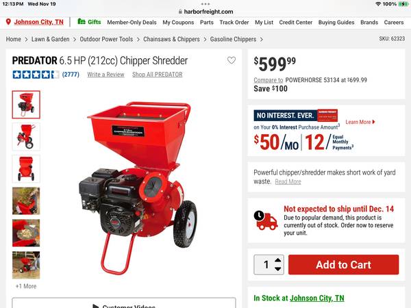 I bought this last year and used this shredder one time for mulching leaves. It is like new. It would cost around $650 to buy a new one at Harbor Freight. Call me with questions. Thanks.