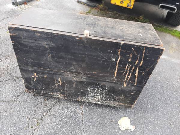 $55 CASH WOODEN BOX ON ROLLORS ROLLS GREAT GOOD SHAPE CALL OR TEXT RICK THANKS 31 3/4 wide x 25 inches tall x 11 1/4 inches inside dimensions 31 Across x 20 1/8 front to back 10 1/2 tall