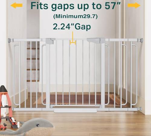 Child Protection Gate for Stairs/Doorways - Premium Grade Model - "Extra Wide" Edition - Opens up from 29.7" up to 57" Doorways - Mom's Choice Awards Winner - This is a well made and designed gate - Carbon Steel Frame but Still Lighter Weight -