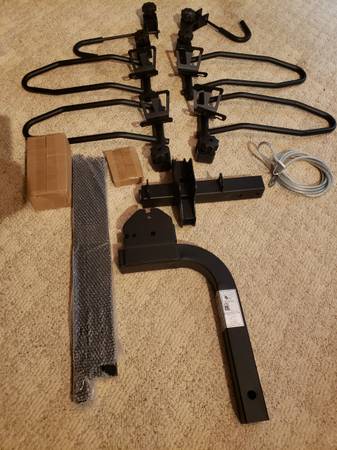 FSBO - Have a Double Bike Rack Hitch - 2" Slide In Receiver - Designed for (2) E-Bikes - Accepts Up to 5" Fat Tires - 200 LB Rated - Made of Alloy Steel - Black Powder Coat Paint - Comes with Hitch Pin - Non Rattling Hitch Clamp - Straps - Theft Prevention Cable - Reflective Tape - This Rack is Designed to Tilt outwards and Folds Upward for Trunk Access - Measures 50" Wide X 29" Deep -