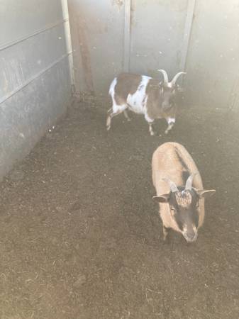 Brown - is 2 Yrs and bred to a chocolate buck a few months along the paint is bred to a black and charcoal brown buck and a few months along both healthy and they are very gentle $240 for both paint has blue eyes delivery available for a fair fuel charge or you come pick up thanks
