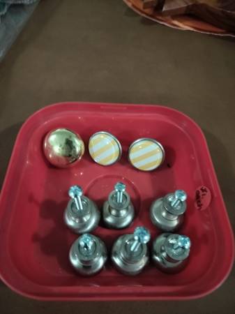 1" wide, 3/4 "depth mushroom knobs/cabinet pulls, brushed nickel in color.