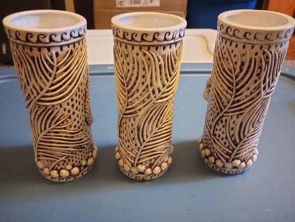 3 Tiki Style Chalices cleaning storage and no longer need. PLEASE allow up to 48hrs to respond.