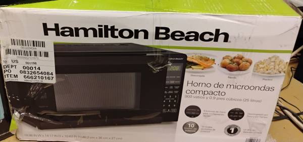 Hamilton Beach 0.9 cu ft, 900 watt compact microwave. Buyer must pick up in Boones Creek.