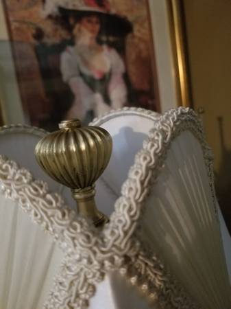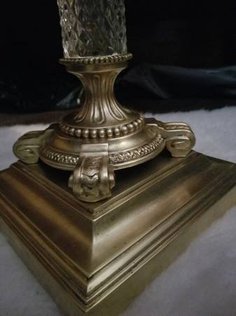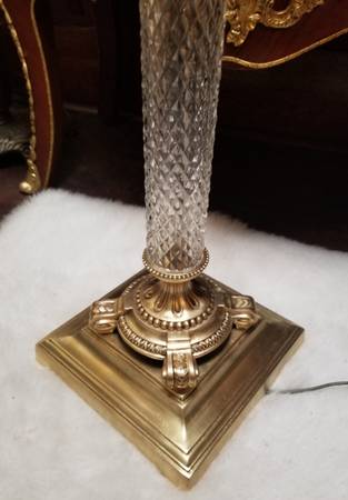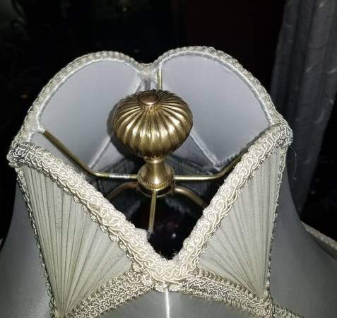 This Stunning Floor Lamp has a Solid Brass Base, Brass Accents, including a Solid Brass Harp and Solid Brass Finial. The lamp is stunning and could be placed practically anywhere in the home. Excellent, like new condition. Absolutely Gorgeous.