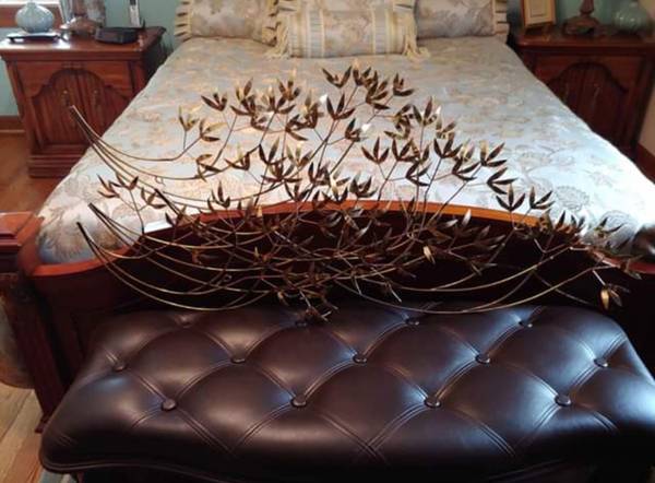 Mid Century Modern Wall Art Sculpture by American Designer Curtis Jere. The Mid-Century Modern Curtis Jere Bamboo Branch Depicts Slender Chutes with Delicate Leaves. You will Certainly Fall in Love with the Graceful Organic Form and Subtle Patina Variations that are Better Celebrated by the Naked Eye. Not Only is this Brass Wall Art Aesthetically Pleasing, and it’s in Mint Condition as Well. Signed and Dated by the Artist.