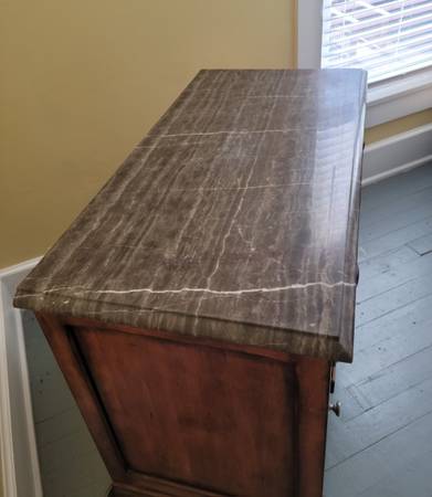 If it's listed, it's available. Destinations by Century, Solid Wood Cabinet with Marble Top. Cabinet Features Solid Wood Construction, Marble Top, Three Dovetailed Drawers with Leather wrapped...