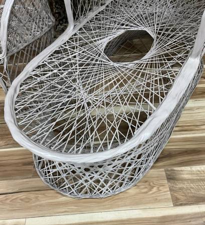Beautiful Mid Century Modern Web Spun Fiberglass Chaise Lounge and Armchair Set by Russell Woodard, for Indoor or Outdoor use. Excellent Like New Condition. Great for Sunroom, Patio, or Poolside.