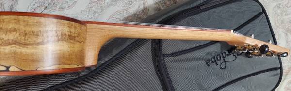 The new, 24 series ukuleles offer a combination of exotic tone woods. Spalted Maple back and sides offer a unique look and tone, while a solid Spruce top projects a voice much larger than its size suggests. Deep red, Padauk body and fingerboard binding, combined with a padauk rosette, add a beautiful pop of burgundy to their already striking appearance. Additional features include a Mahogany neck and spalted Maple headstock veneer and a satin polyurethane finish.