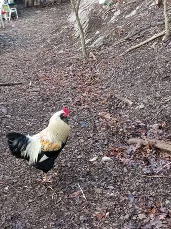 Tame chickens hand-raised for adoption. The hens also lay eggs so watch out, your dog may get fat eating eggs it finds. We put a cage up on a big sill in our sunroom and one lays her eggs in it so the dog can't get them. Our chickens live outside in a coop and most are under a year old.
