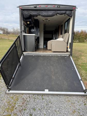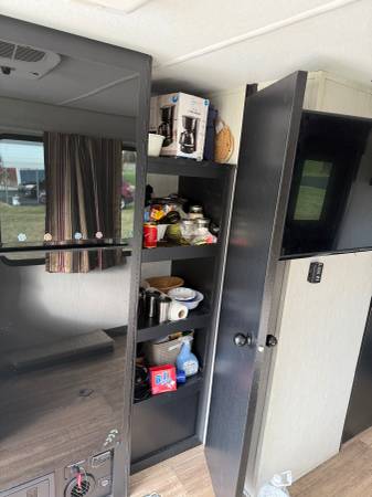 solar panel runs fridge and lights. Good condition and tires with spare. Inside and outside shower. Gas quick connection for grill or griddle. 2 propane tanks 4 jacks on each corner. Stove, burners, and microwave. Air and heat work well. Electric and gas hot water heater. Length is 24feet title in hand call or text John 4237075608
