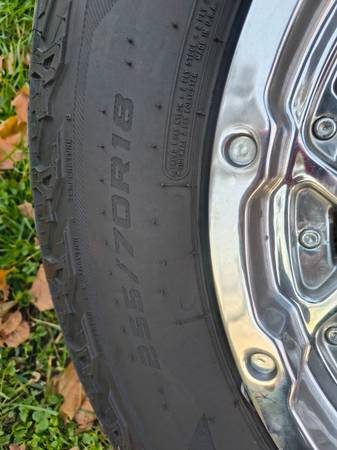 18x10 I have all 5 255/70/18 5x5 pattern they was on my jeep wrangler but I bought 20 inch rims and tires 10/32nds left on the Cooper tires